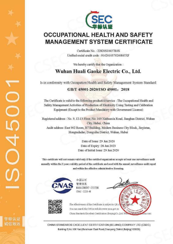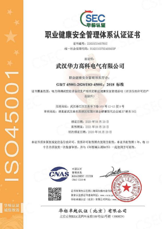 武汉华力高科职业健康体系认证证书