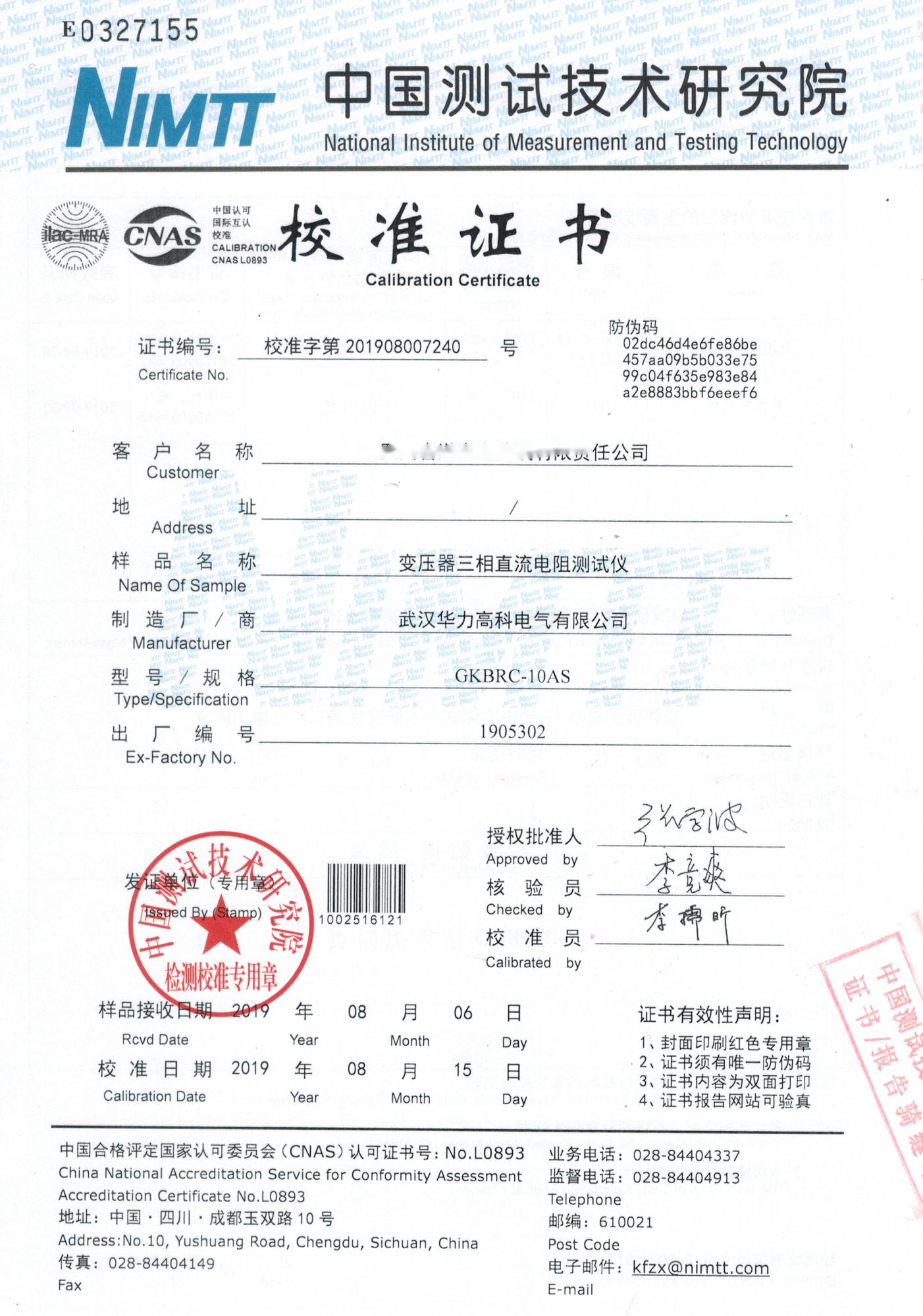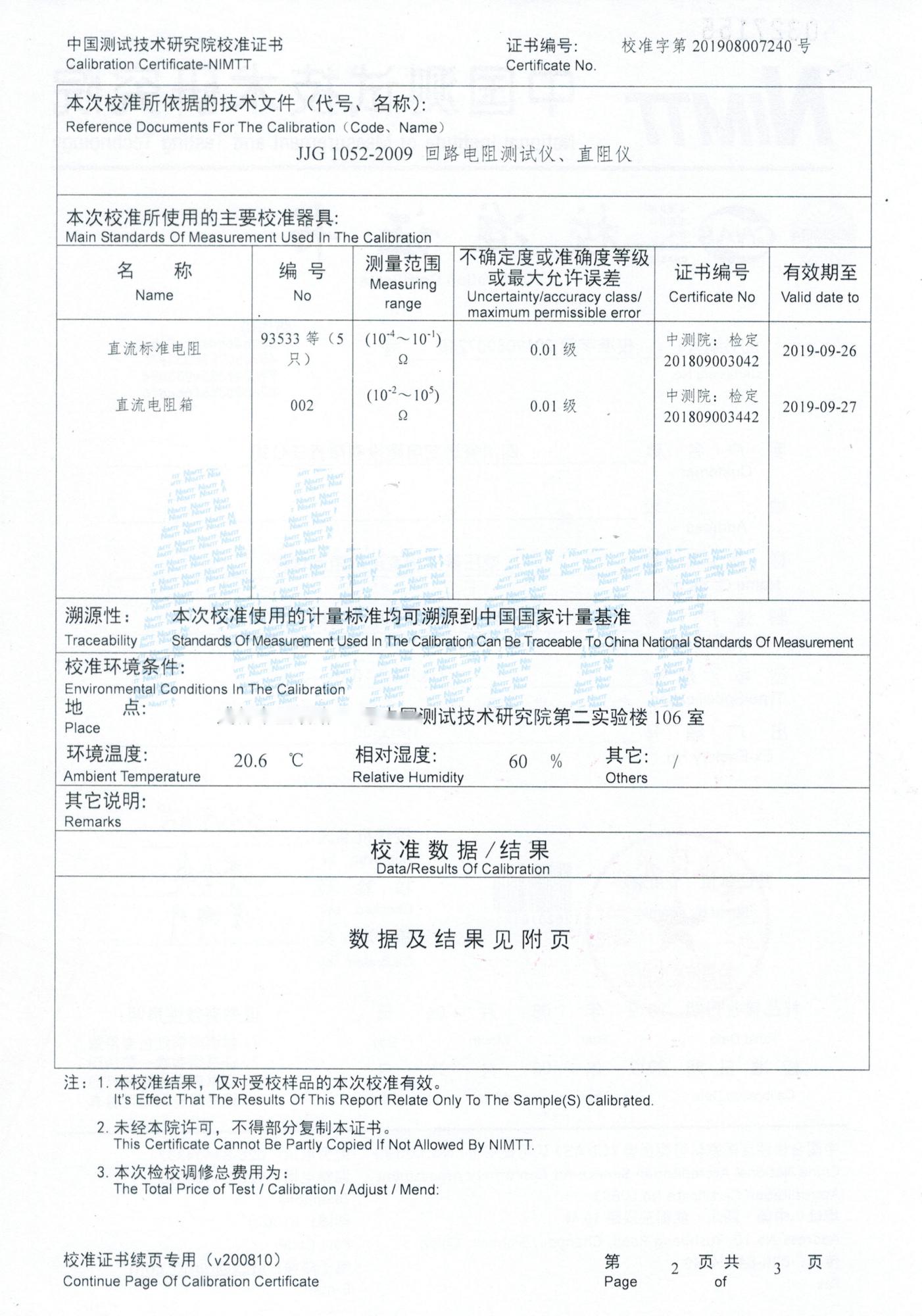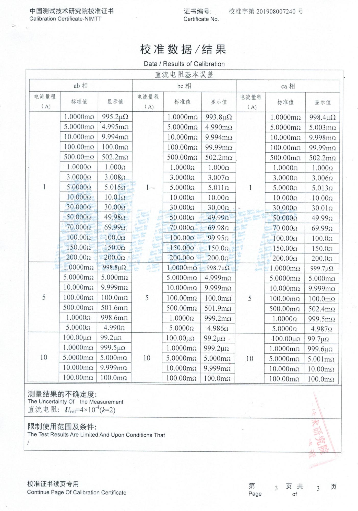 三相直流电阻测试报告
